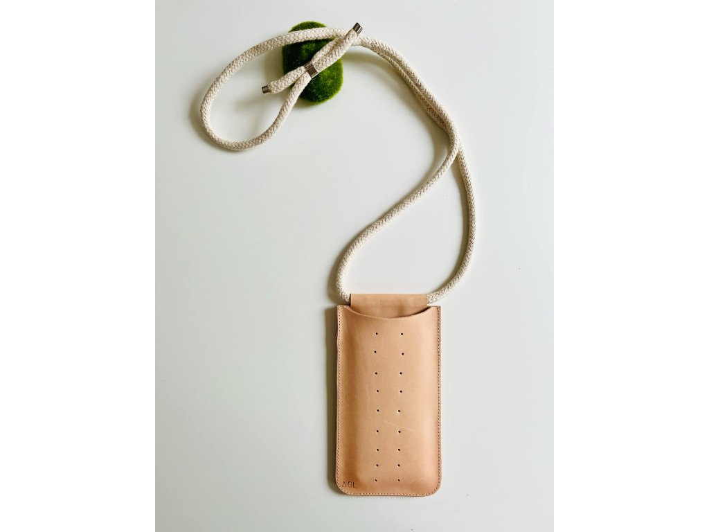 Jsou vyrobeny z přírodní třísločiněnné hovězí kůže z autoprůmyslu. Ze zadní strany mají malou kapsičku na peníze. Popruh je nastavitelný, vyroben z přírodní kůže. Kapsu lze nosit na krku nebo přes tělo. Kapsa je navržena tak, že se pohodlně umístí mobil včetně silikonového obalu.